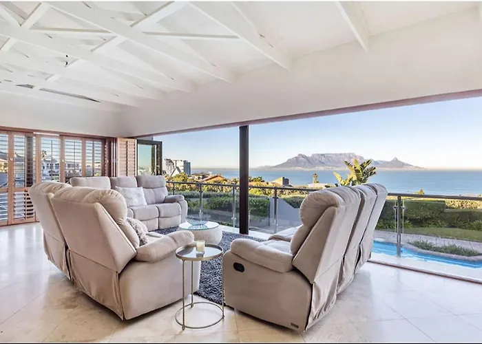 Situata a 2 km dalla Spiaggia di Bloubergstrand, la Villa Luxury Coastal Living With Sea And Mountain View Big Bay offre un patio con vista sulla piscina.